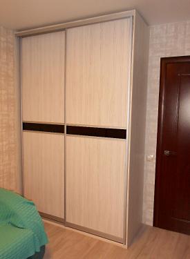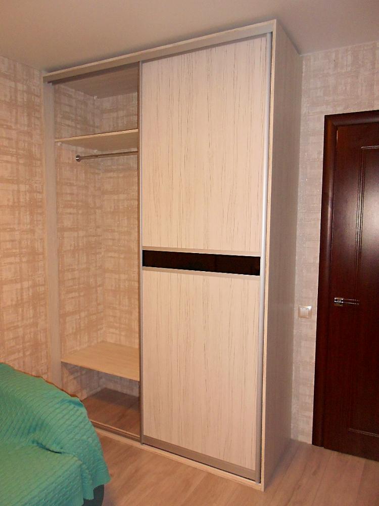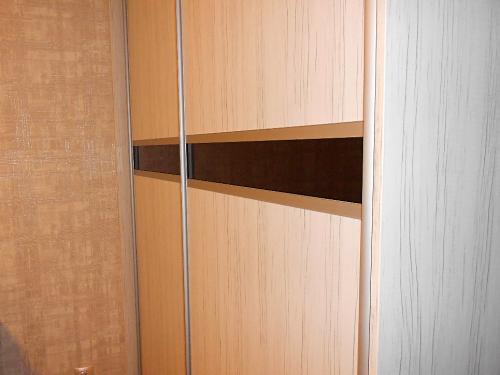 Фасады- купе: Алюминиевый профиль СЕРЕБРО с делителями,стекло крашенное, ЛДСП ЭГГЕР.