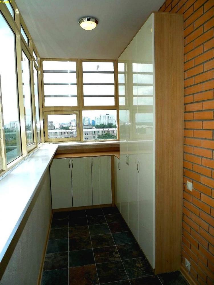 Красивый трех дверный распашной шкаф с угловыми тумбами на лоджию. Не большая глубина шкафа и тумб оставляет достаточно пространства для подхода и пользования мебелью. Шкаф и тумбы изготовлены для хозяйственных нужд.