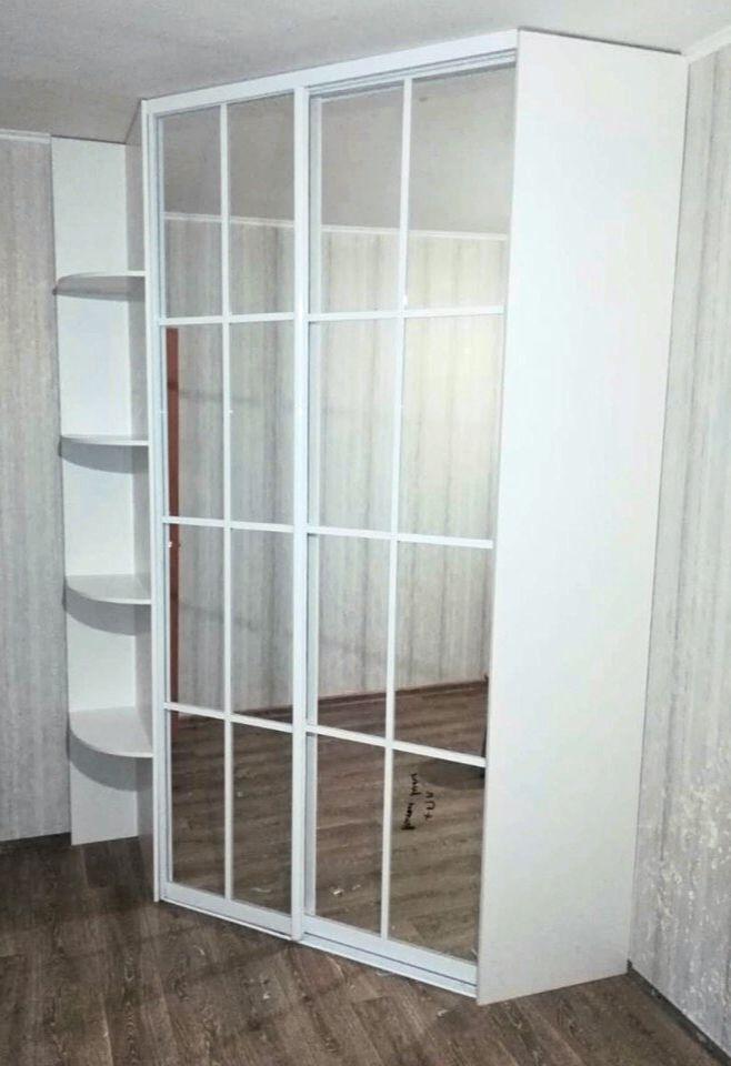 белый двух дверный шкаф- купе угловой в спальню